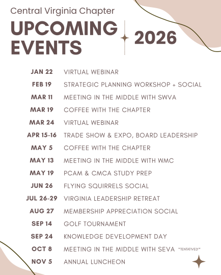 The purpose of the Central Virginia Chapter is to provide education, networking, resources and advocacy for community associations and the professionals and volunteers who serve them.
